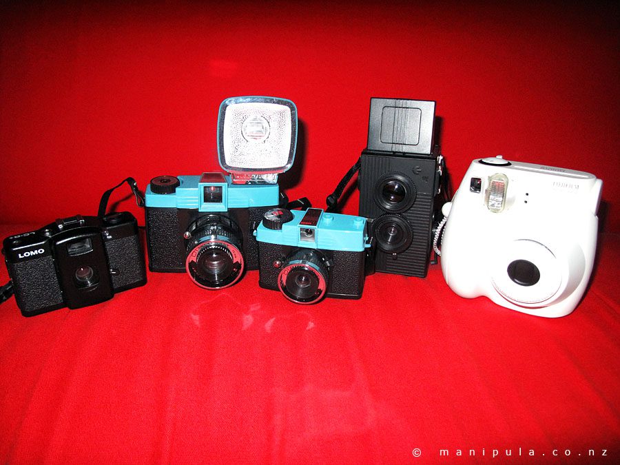Toy CamerasSo the toy camera clan grew today. After much umming and ahing (if that’s how it’s written!?) a wee Fuji Instax Mini has come to join the fray… Happy happy!